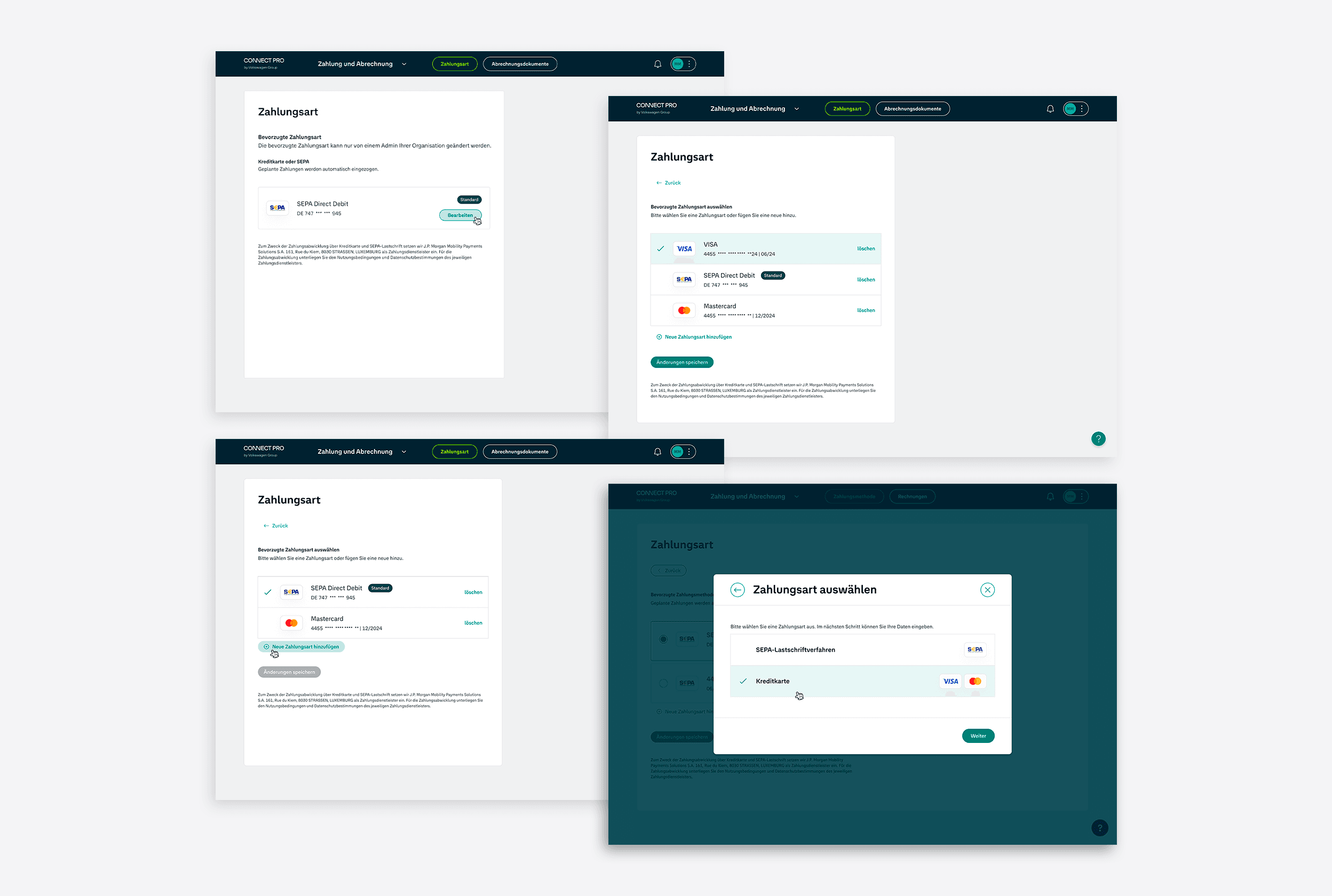 Working as part of a distributed team structure with 7 specialized groups, I served as a flex designer supporting multiple workstreams. I designed key features including the payment method system, infleeting tables, fleet management dashboard, and route mapping interface. Close collaboration across teams was essential to maintain consistency despite the distributed structure. The solution consolidated fragmented workflows into a single platform where fleet managers could handle everything from vehicle infleeting to service scheduling and route planning.
